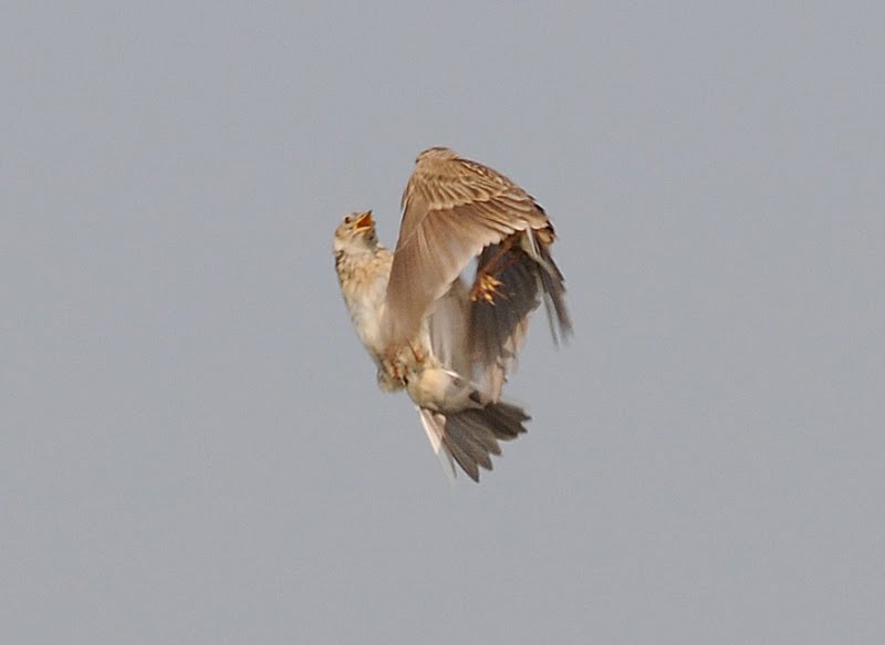 The next day, Rob and I went to the Biggin Hill airshow. He is keen on planes - I'm not desperately interested in them but it seemed like the decent thing to do, given how thoroughly Rob has embraced my obsession with wildlife. I had a pleasant surprise though - almost throughout the whole show there were Skylarks disporting themselves in and over the grass between us and the runway. So there were many moments when all cameras but one were pointed hard left waiting for the Spitfire or Tornado or whatever to appear, while I was clicking away at a small brown bird right in front of us.