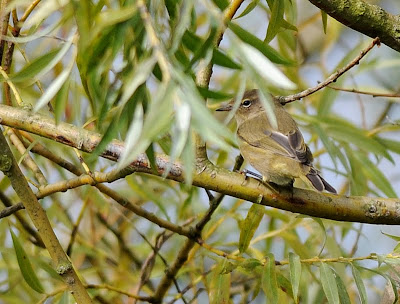 And the Chiffchaffs? Well, that willow is a long way down. Here's a full frame of the clearest shot I got. The Chiffchaff is in the middle. Look carefully... It's tiny in the frame, but how does it look when cropped to a more sensible size?