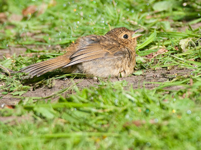 It seems like only yesterday that I was complaining on Warren Baker's Pittswood blog about not seeing any juvvie Blue Tits this year. Well, that's all changed, because today I saw two. This one was by the visitor centre, pursuing one of its parents through a birch tree.